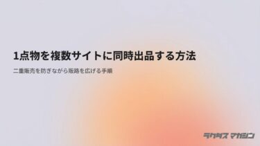 1点物の複数サイト同時出品方法では、在庫連動を含めた同時出品の具体的な進め方を解説しています。1点物特有の注意点を押さえておくと、出品ミスの防止に役立ちます。