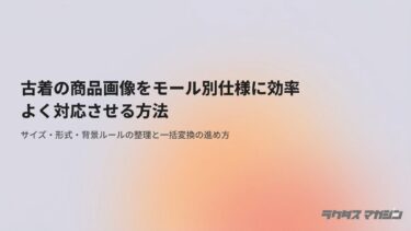 古着を複数モールに出品する際、商品画像の仕様がモールごとに異なるため、1点ずつ手動で調整していると出品作業のボトルネックになります。画像仕様の差は「サイズ」「ファイル形式」「背景ルール」の3カテゴリに整理でき、撮影段階で最も厳しい基準を満[…]
